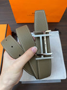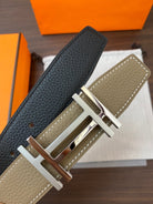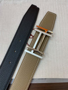 DOUBLE H BELT 32MM SILVER BUCKLE BLACK ETOUPE LEATHER
