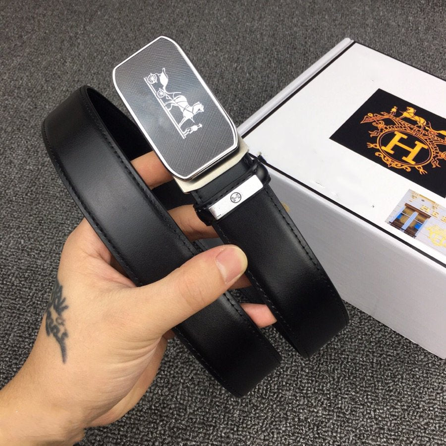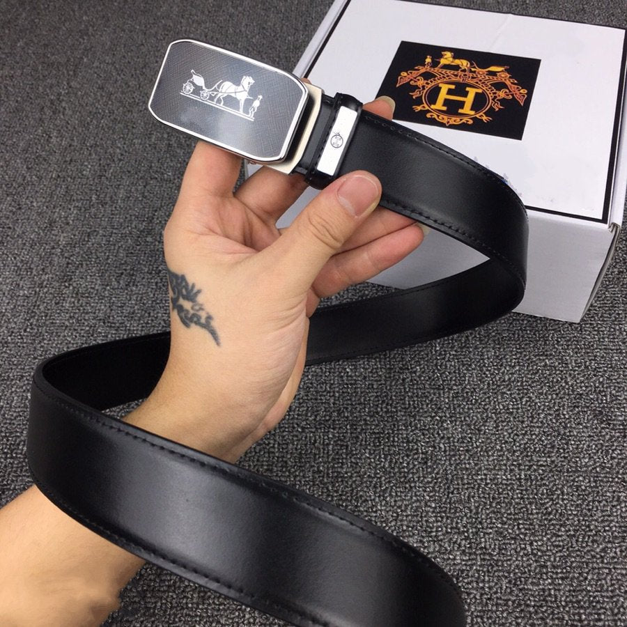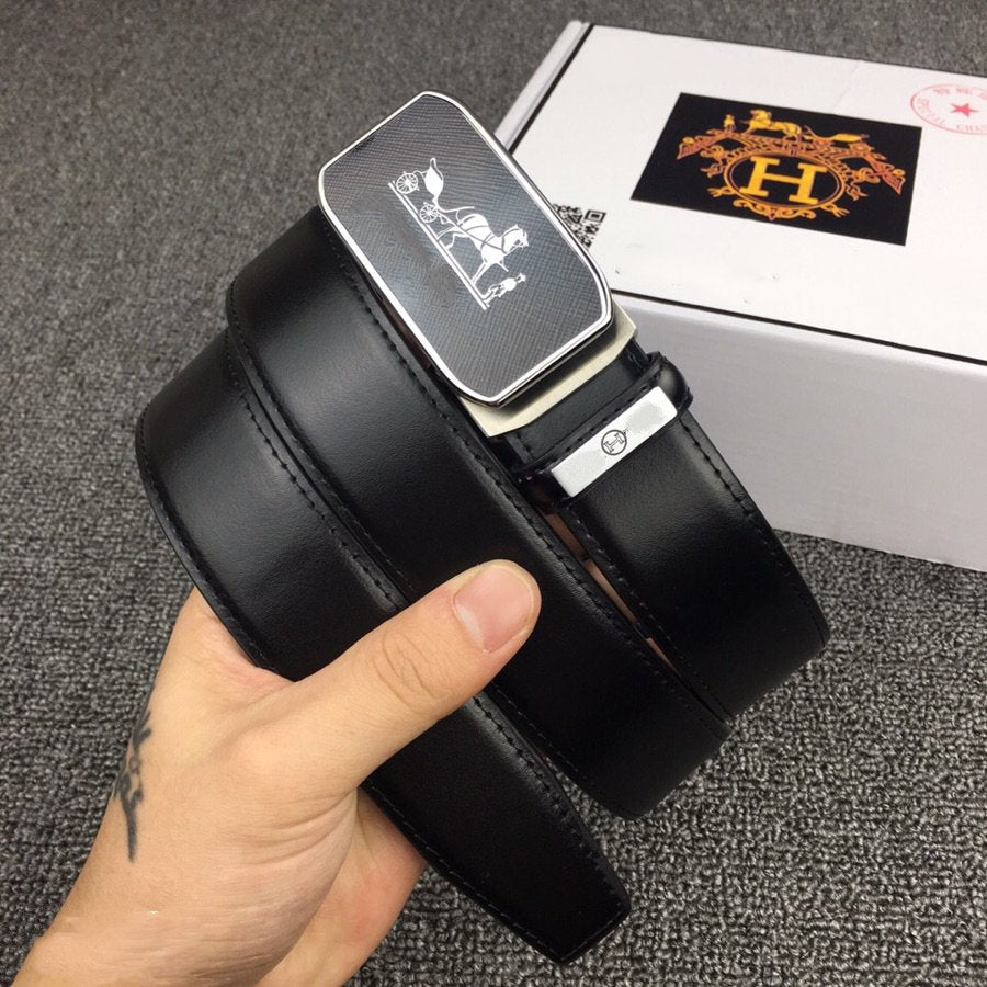 H BELT SILVER BUCKLE 3.5 MM SMOOTH LEATHER