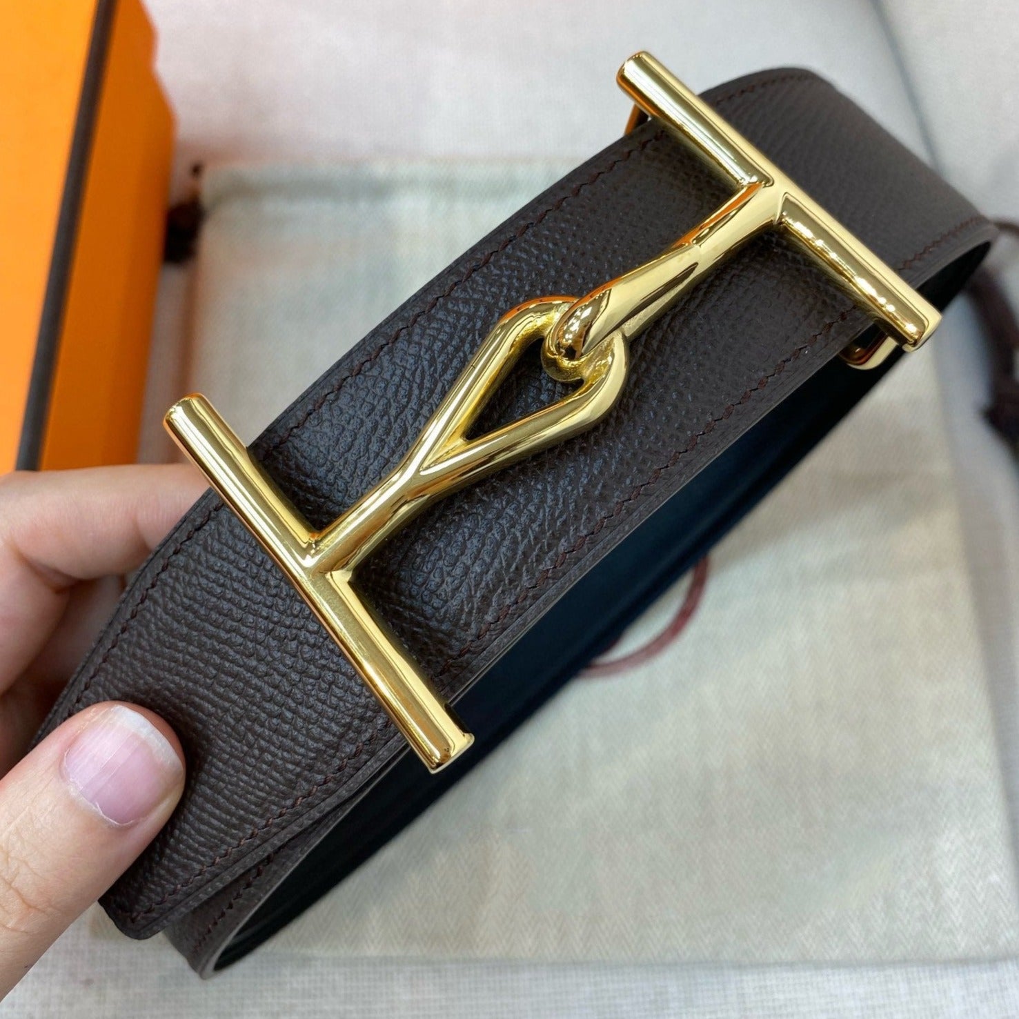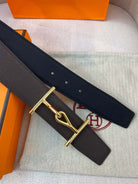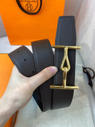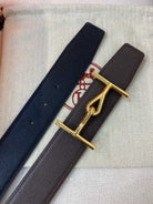 H JUMBO BELT 38MM GOLD BUCKLE DARK BLUE ETOUPE LEATHER