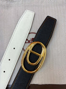 H ODYSSEE RIVERSIBLE BELT 32MM GOLD BUCKLE WHITE BLACK LEATHER