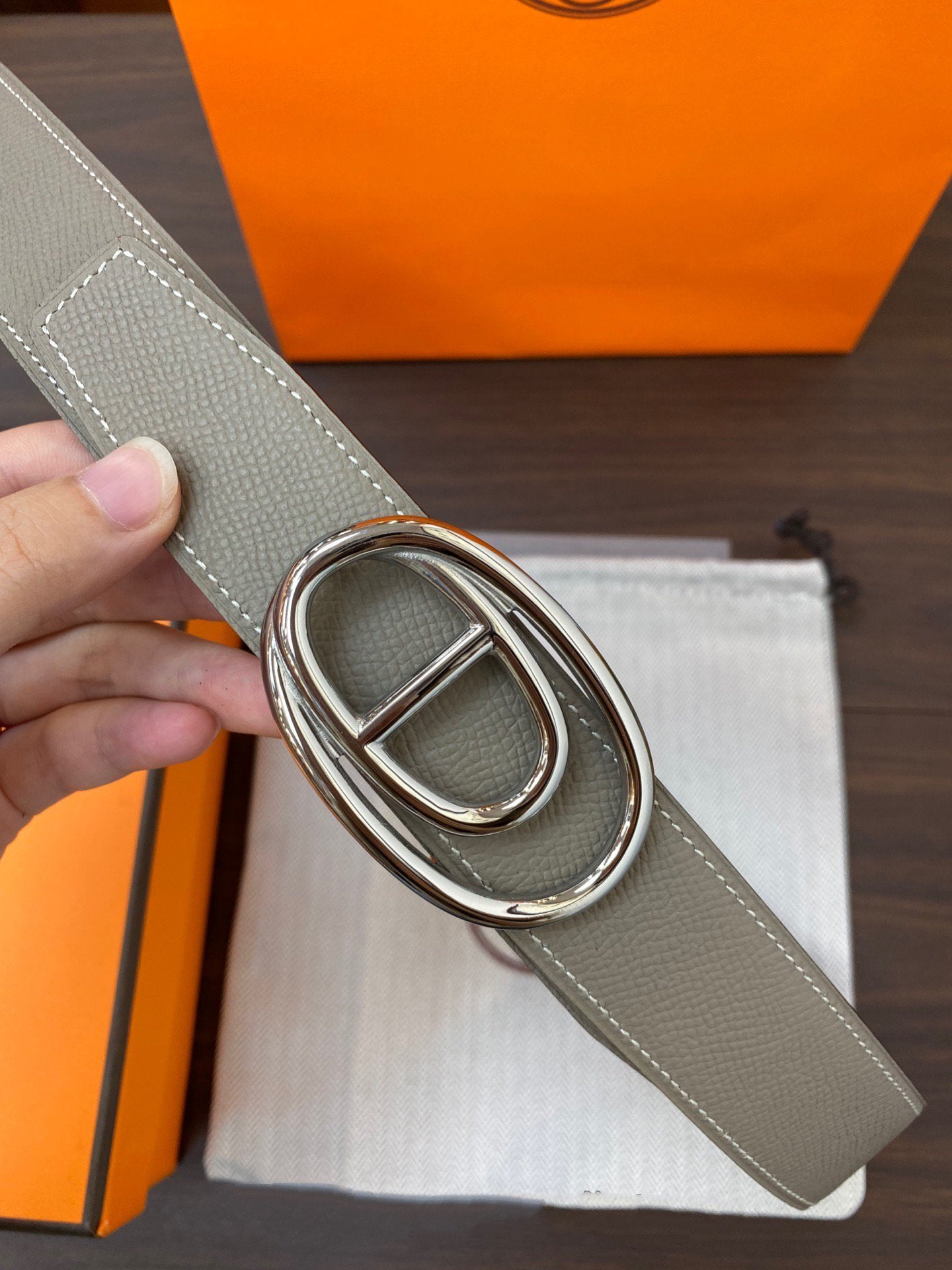 H ODYSSEE RIVERSIBLE BELT 32MM SILVER BUCKLE WHITE GREY LEATHER