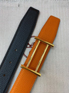 H RIDER RIVERSIBLE BELT 32MM GOLD BUCKLE BLACK GOLD LEATHER