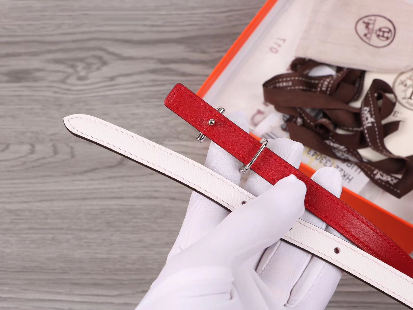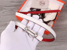 H WOMEN'S BELT 13MM SILVER BUCKLE RED WHITE LEATHER