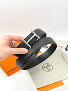 HM 32mm Silver Hisseo belt & Reversible Black leather 186447