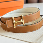 HM Gold Mors H buckle & Reversible 24 mm belt Brown White leather 125364