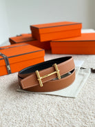 HM H d'Ancre Buckle Belt 32mm Brown Leather 187771