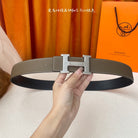 HM Silver Buckle H Belt 38mm Etoupe Calfskin 187184