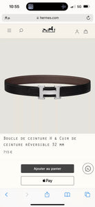 HM Silver H Buckle & Reversible 32mm Belt Black Ebony leather 124644