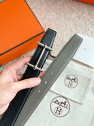 HM Silver H d'Ancre Belt Meyer Gray Leather 187775