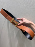 HM TRAVERSE BELT BUCKLE & REVERSIBLE BRONZE BROWN LEATHER STRAP 38 MM GOLD HARDWARE