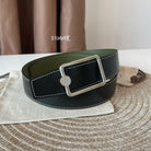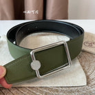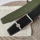 OSCAR BELT BUCKLE & REVERSIBLE OLIVE GREEN AND BLACK LEATHER STRAP 38MM SILVER HARDWARE