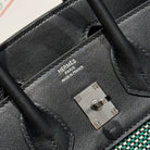 HM Birkin 25cm Black Swift Green White Canvas Silver Hardware