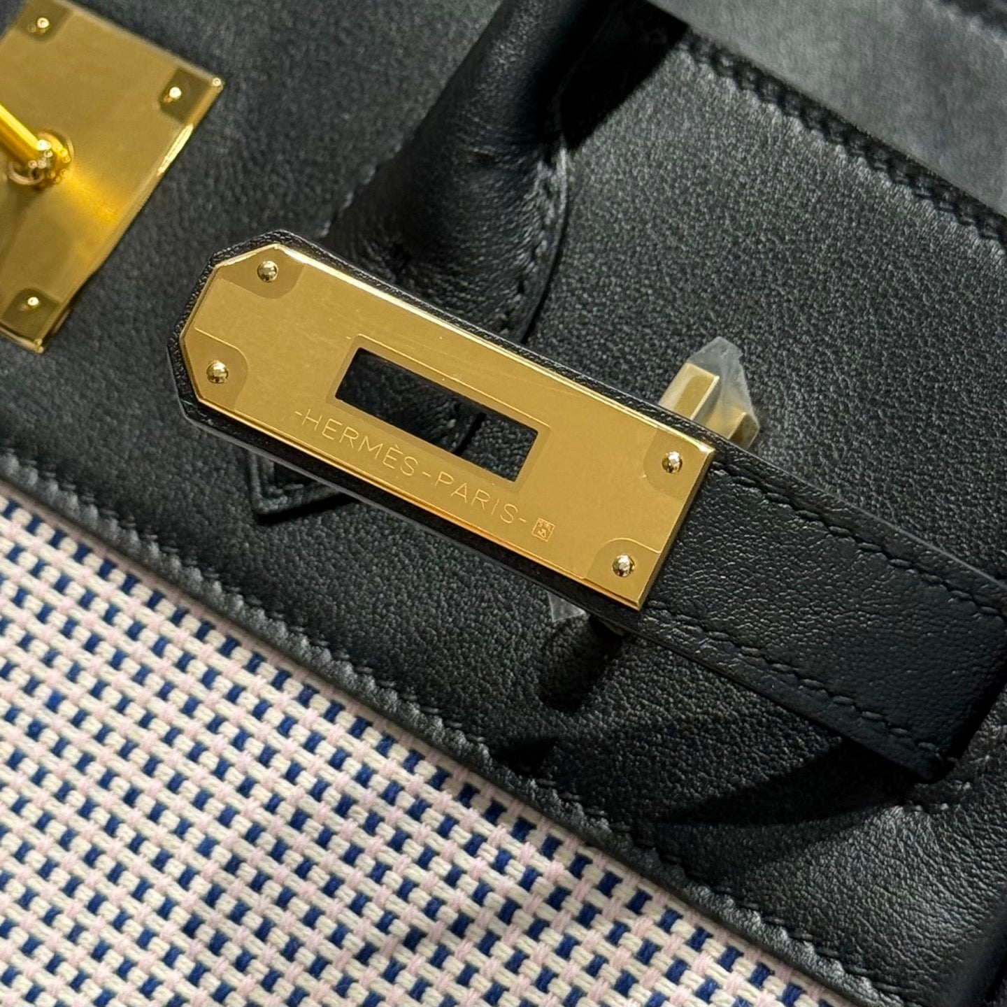 HM Birkin 30cm Black Swift Leather Pink Canvas Gold Hardware