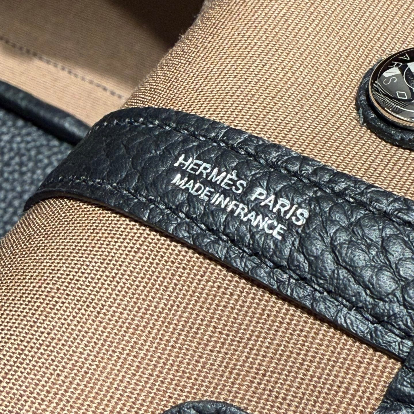 HM Garden Party 30cm Bag Black Togo Brown Canvas