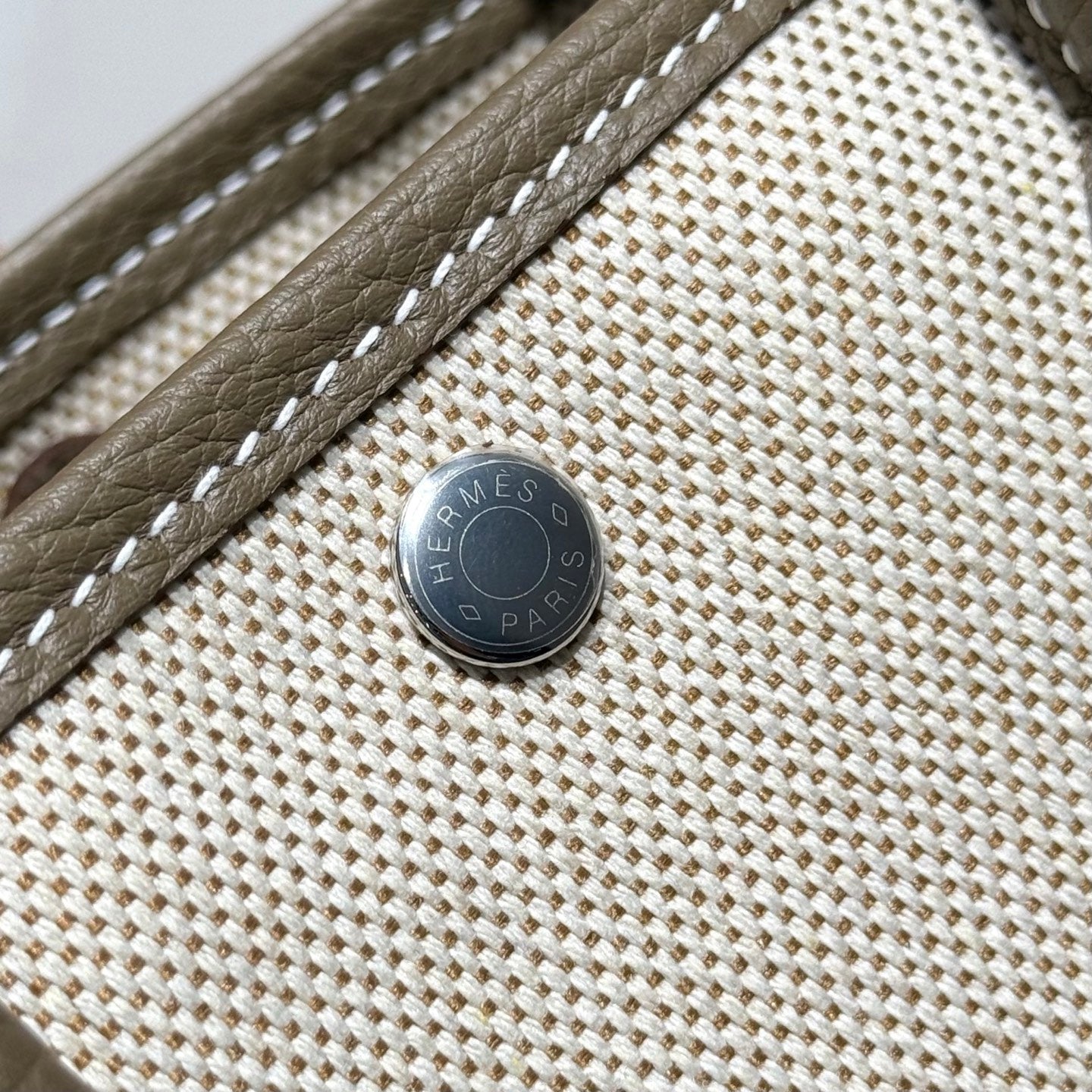 HM Garden Party Mini 23cm Bag Etoupe Togo Cream Canvas