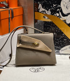 HM Kelly Desordre 20cm Etoupe Grey Epsom Gold Hardware
