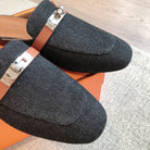 HM OZ Mule Denim Black Brown Cowhide 756853