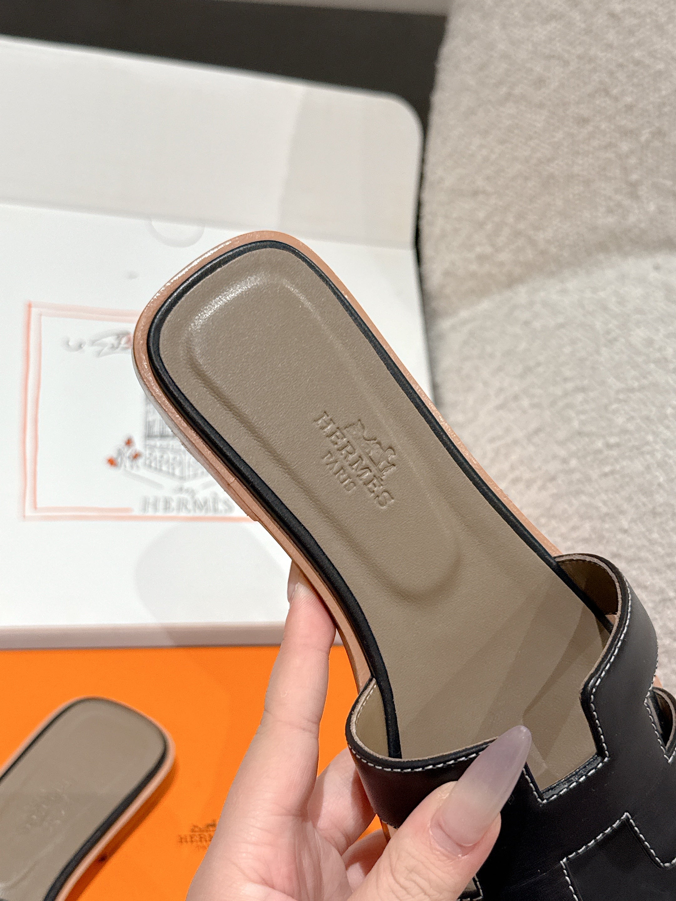 HM 25 Oran Sandal Black Etoupe Calfskin