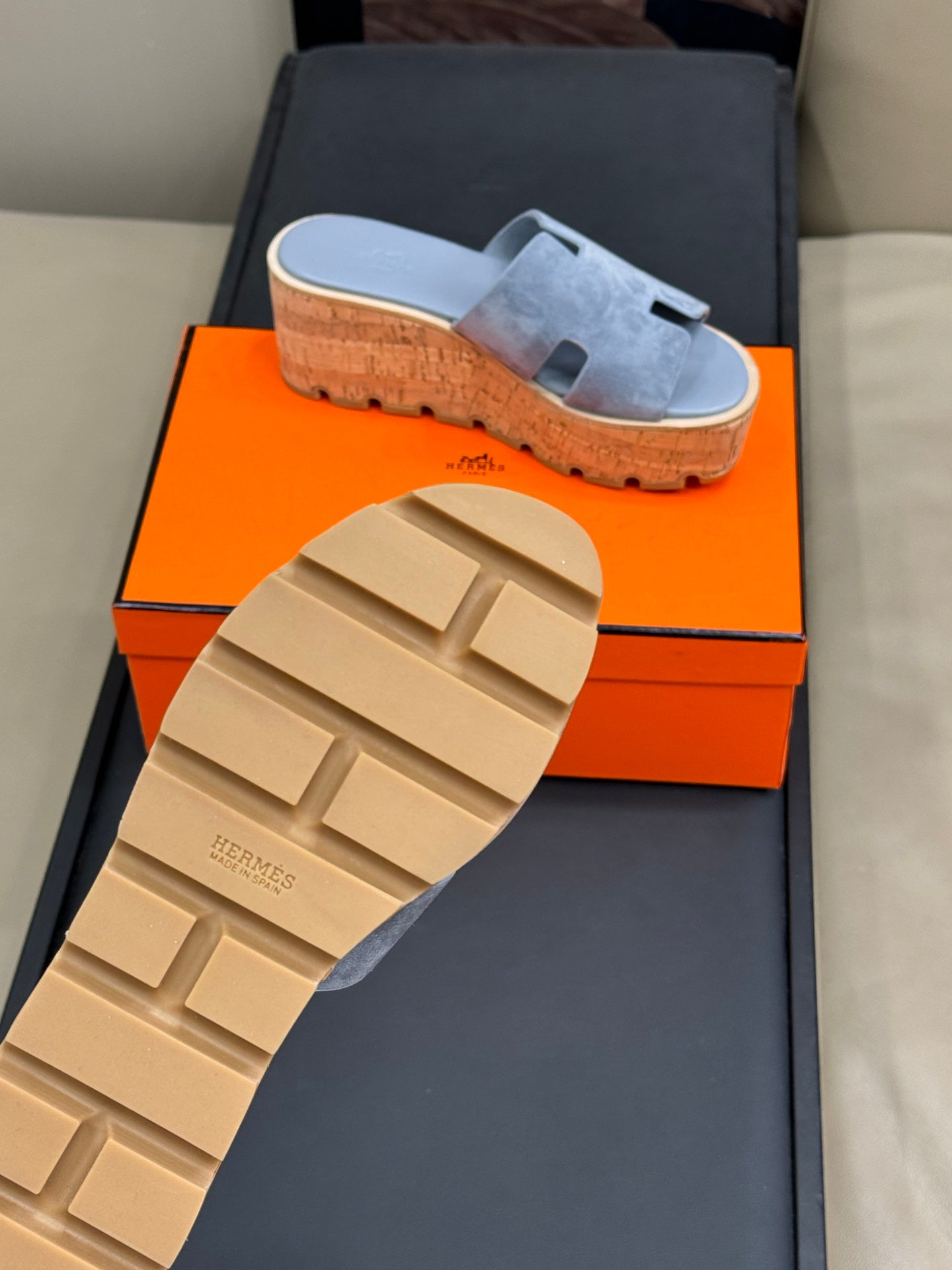 - Material: Suede and Wood