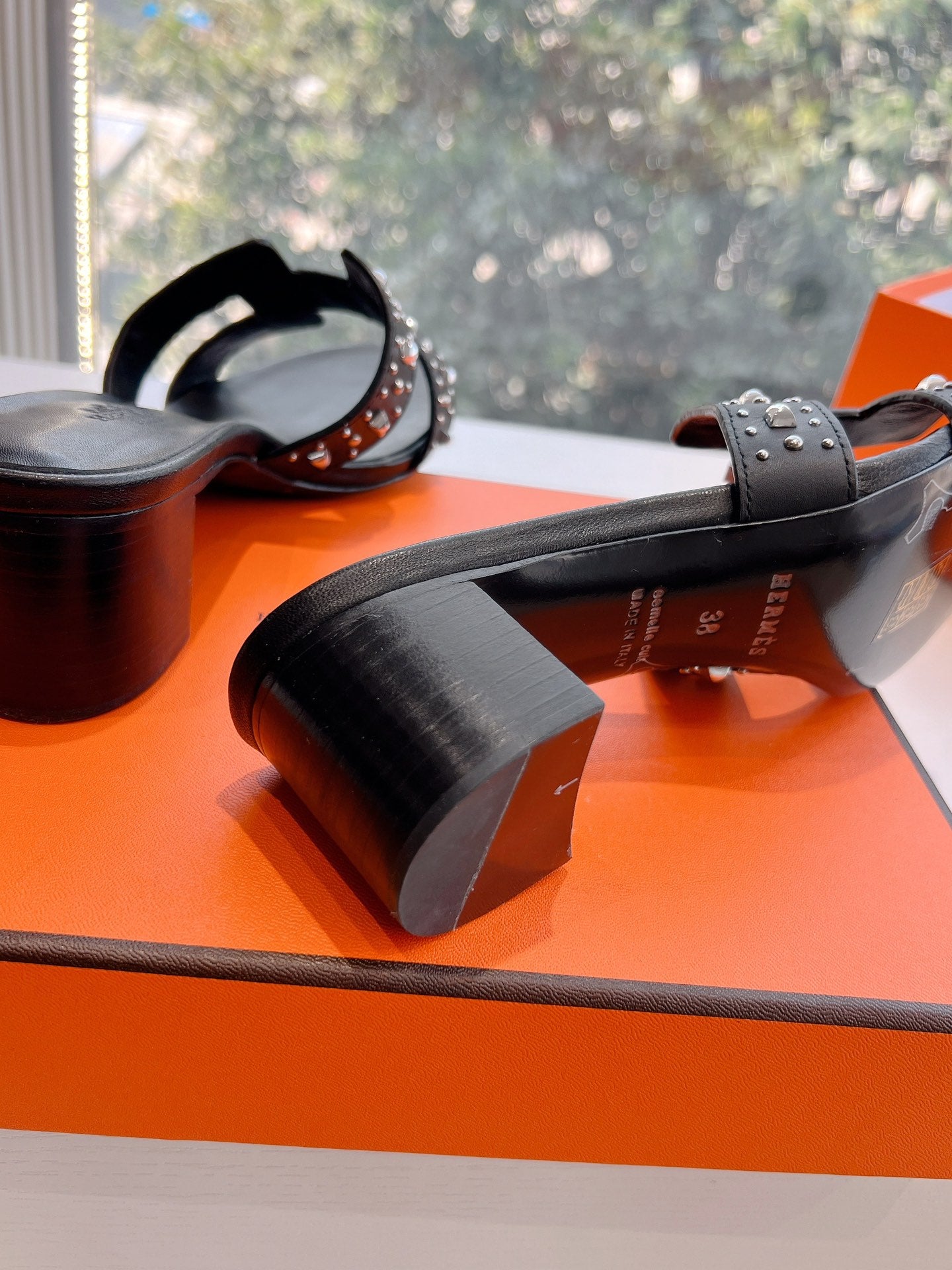 HM 25C Oasis sandal Black Leather with Studs 202838