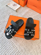 HM Chypre Sandal Black With White Stones Lambskin 963500
