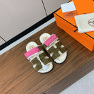 HM Chypre Sandal In Army Green Mix Pink Fleece And Suede 984192