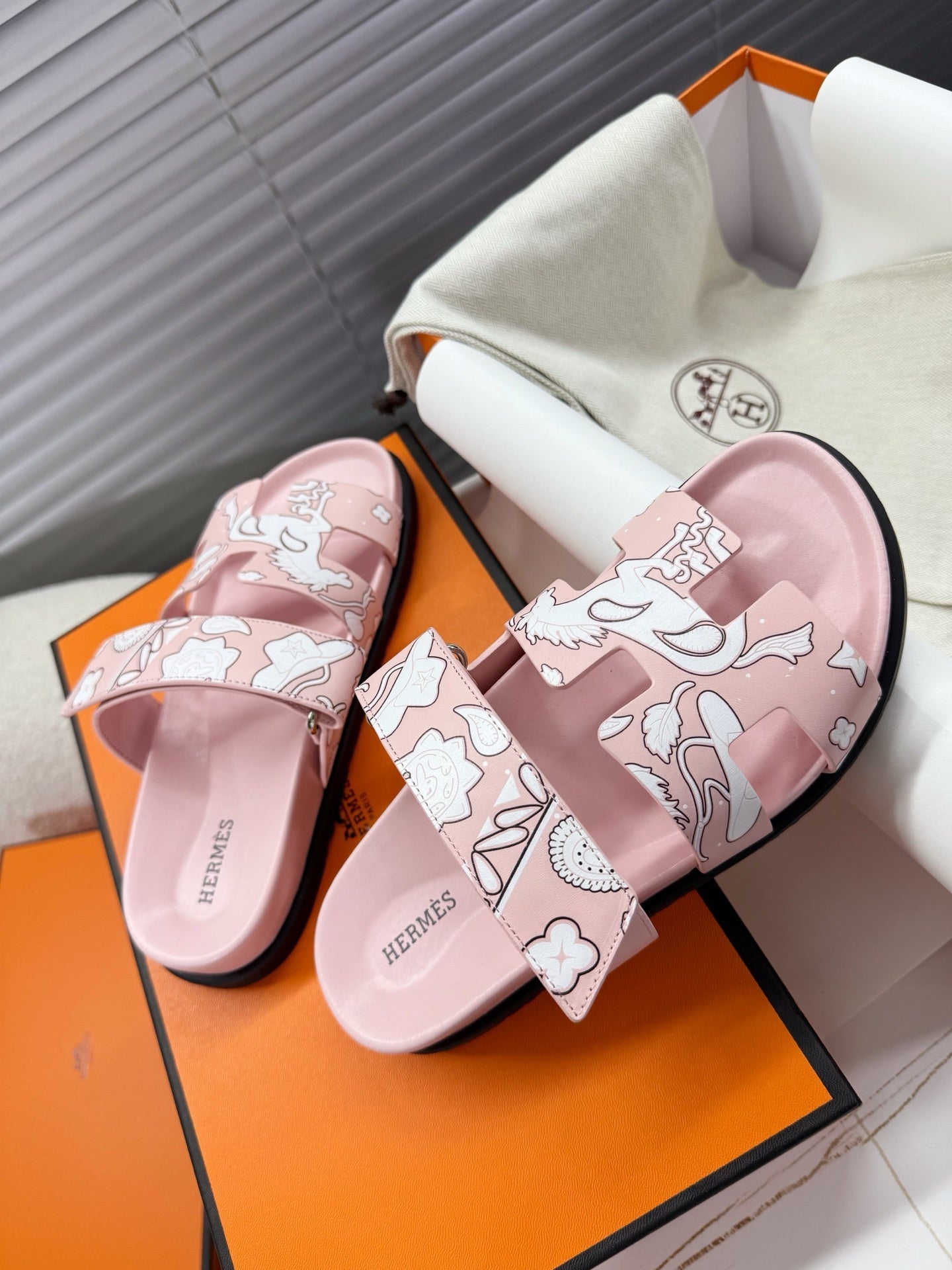 HM Chypre Sandal Pink pastel Pattern Cowhide 205492