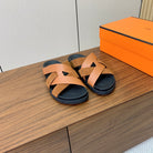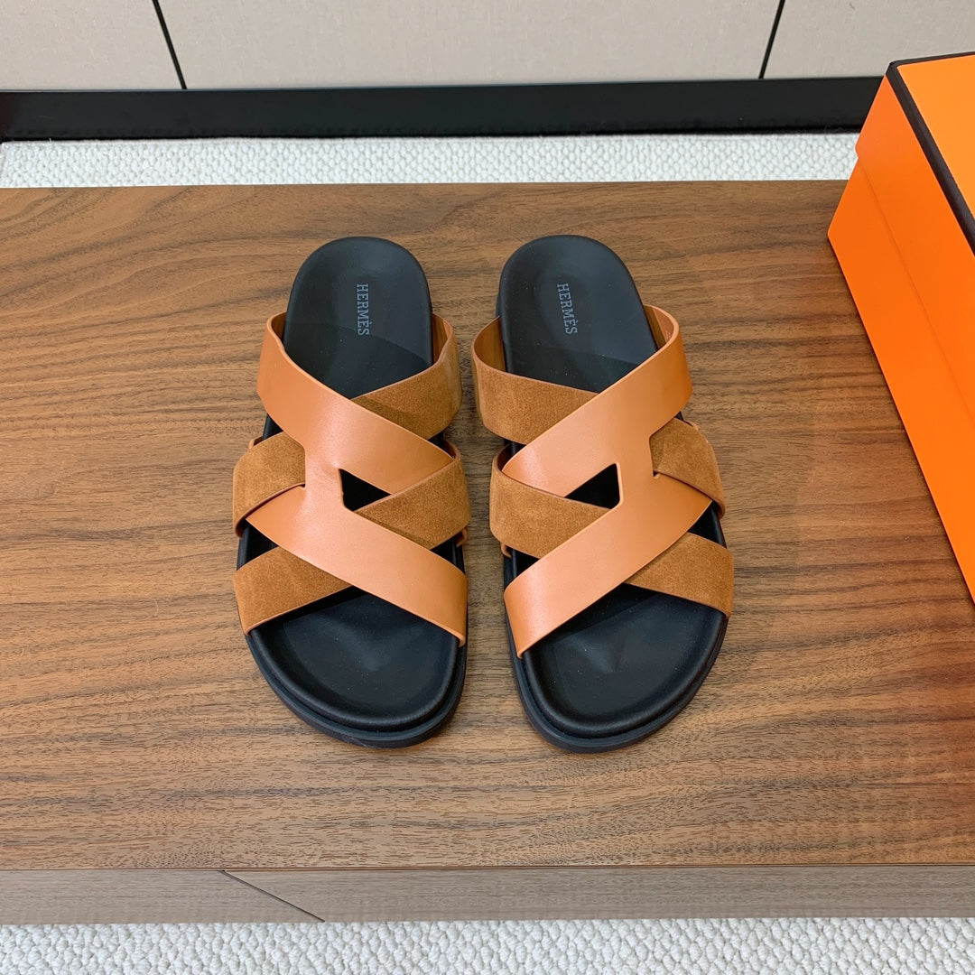 HM Kazimir Sandal Brown Black Suede Calfskin 294039