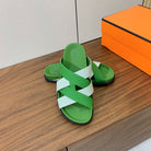 HM Kazimir Sandal Green Gray Farbic Calfskin 293988