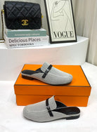 IENA MULE GRAY CANVAS AND BLACK CALFSKIN