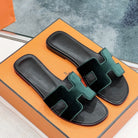 • Material: Sandal in velvet goatskin with iconic "H" cut-out.