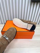 HM 25 Kelly Buckle Ankle Boots Tan Silver Suede 513079