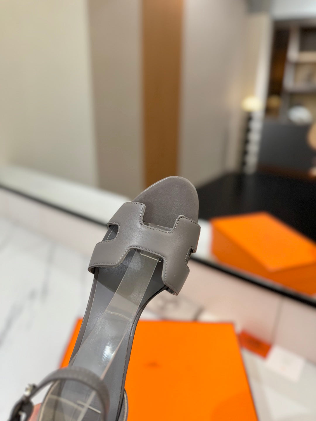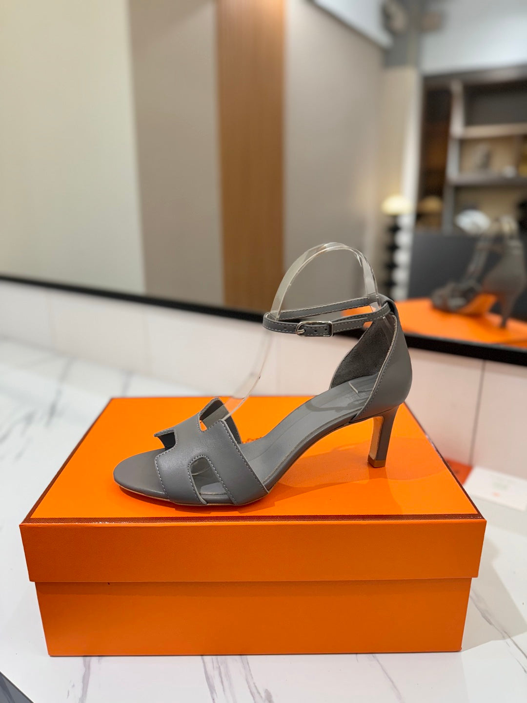 HM Joy 65mm Heeled Sandals Gray Flat Cowhide 294933