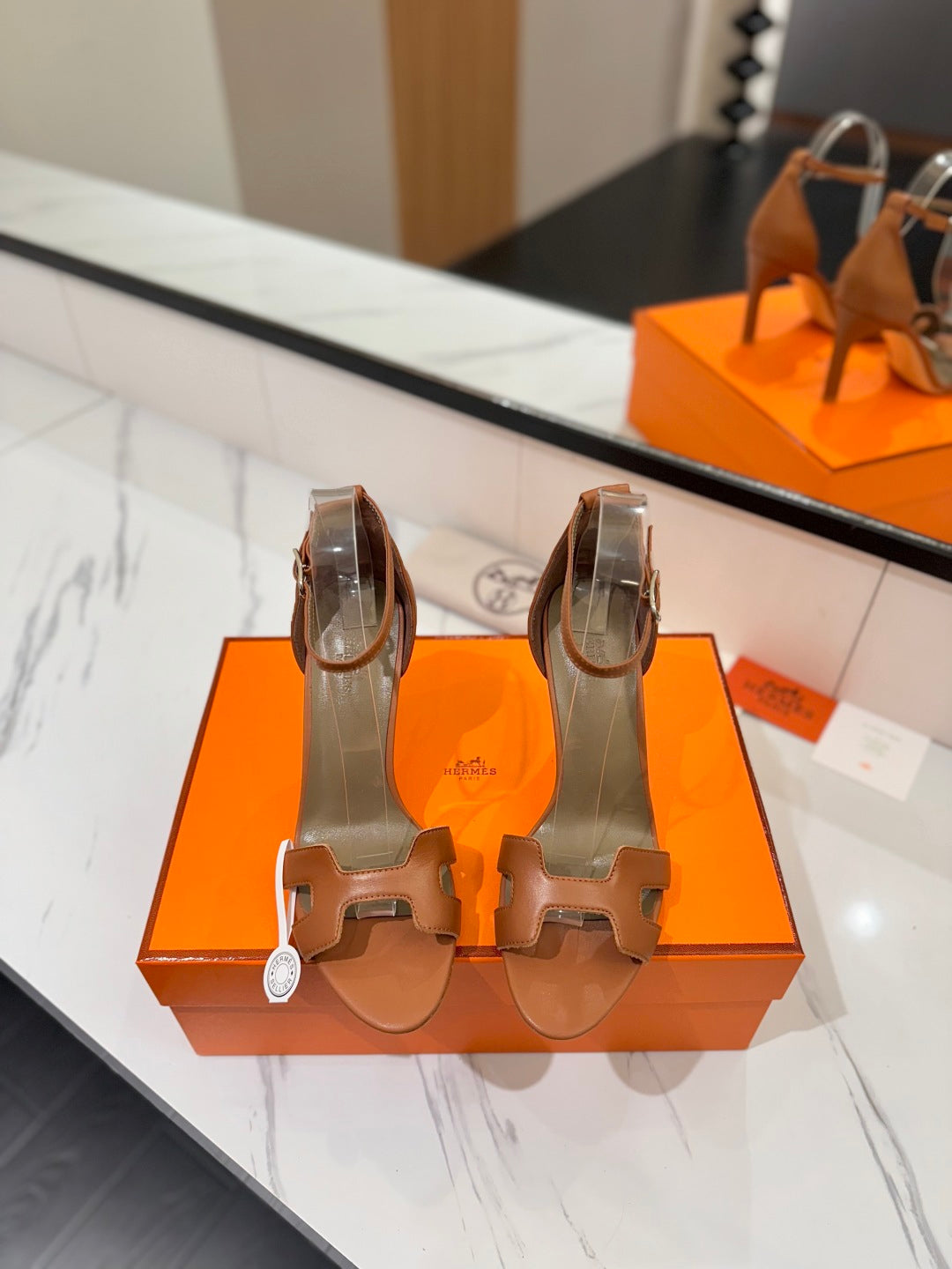 HM Joy 90mm Heeled Sandals Brown Flat Cowhide 294921