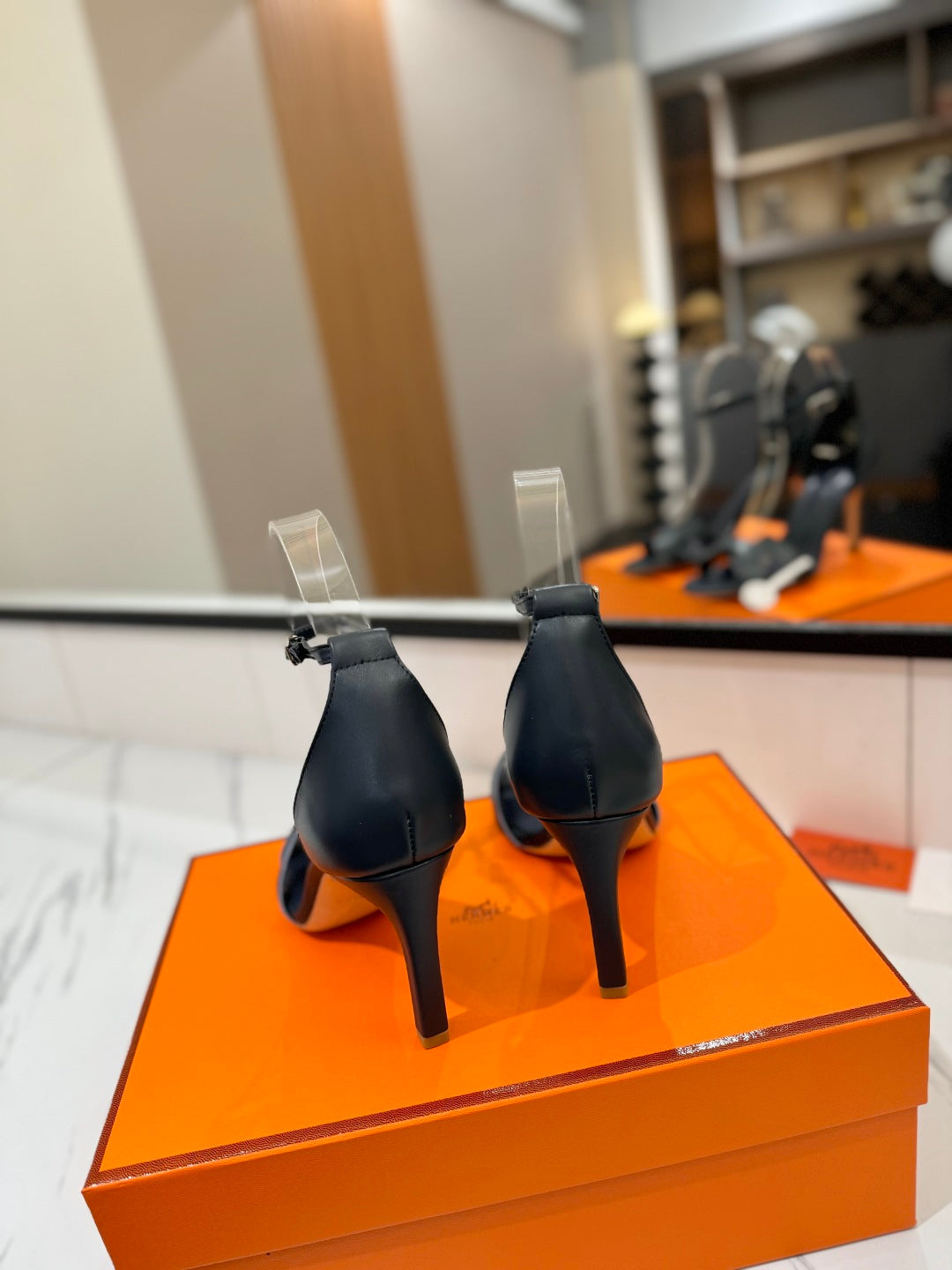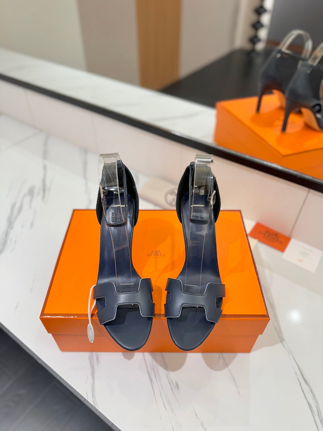 HM Joy 90mm Heeled Sandals Navy Blue Flat Cowhide 294923