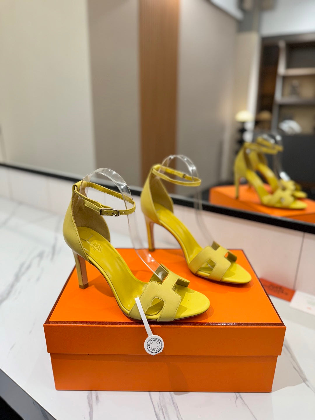 HM Joy 90mm Heeled Sandals Yellow Flat Cowhide 294924