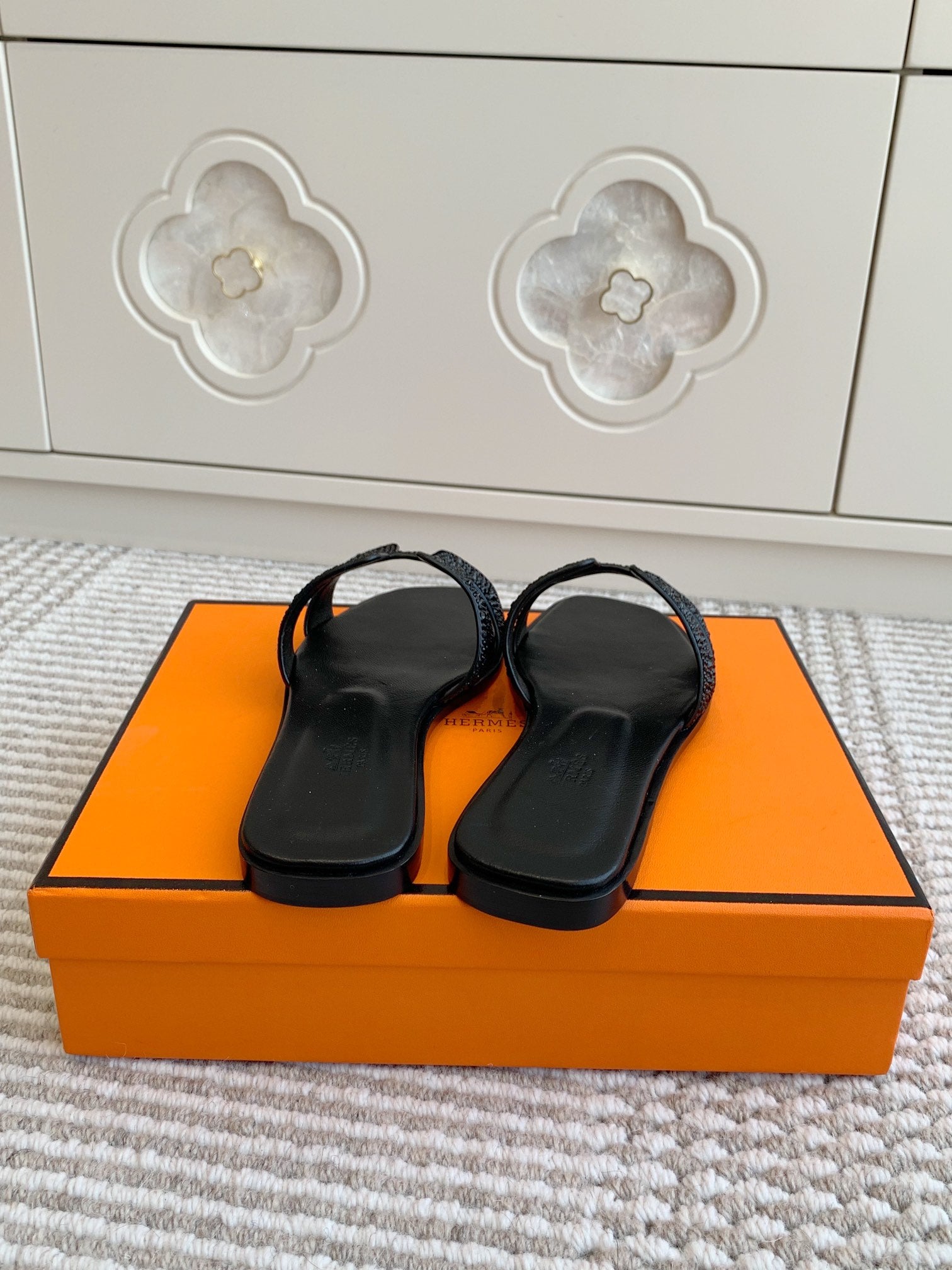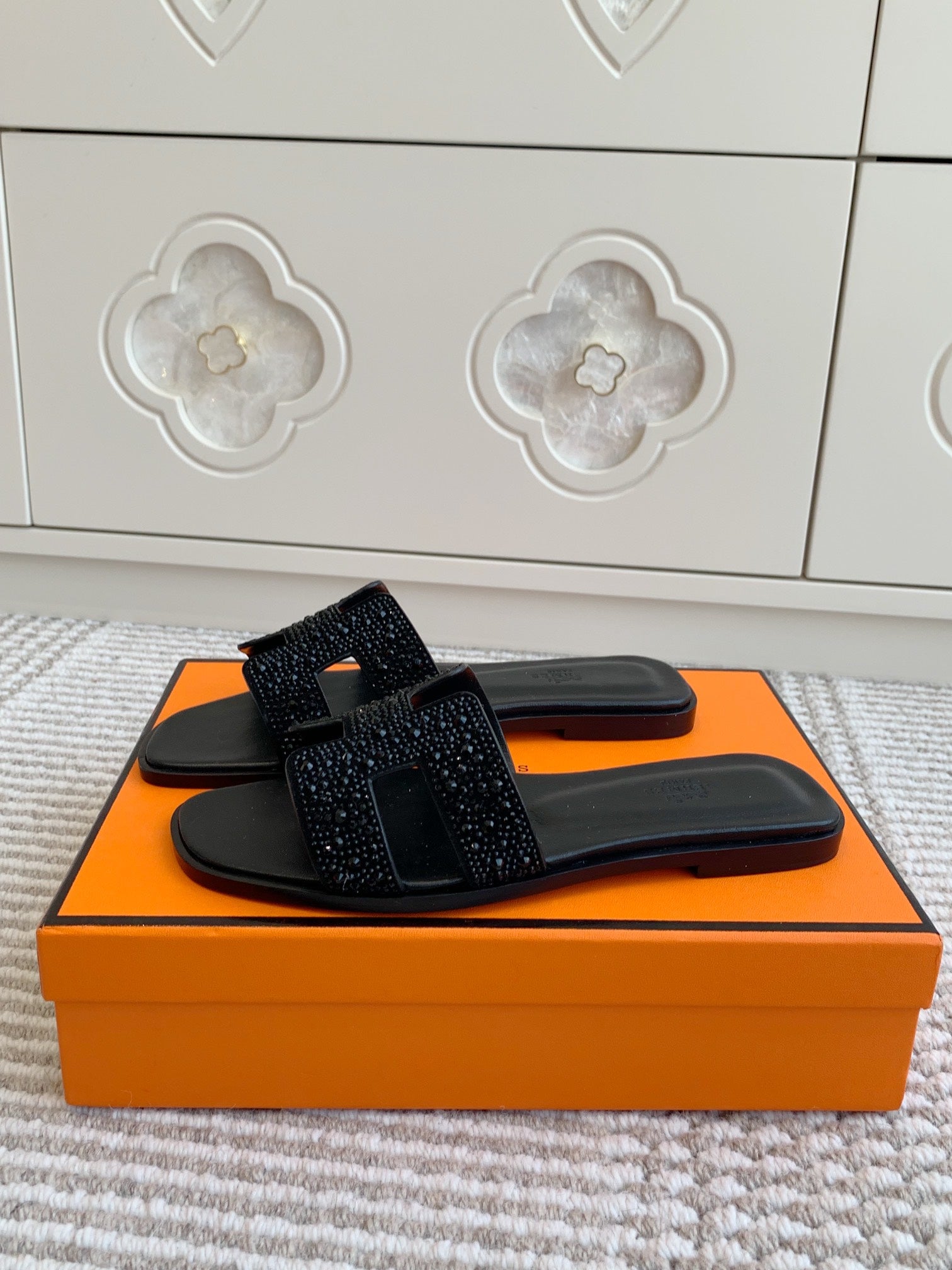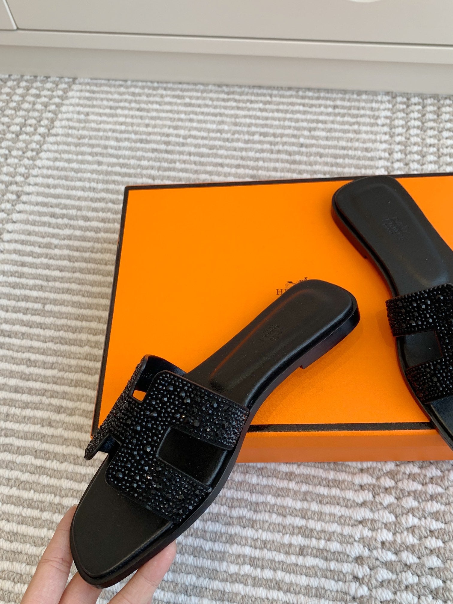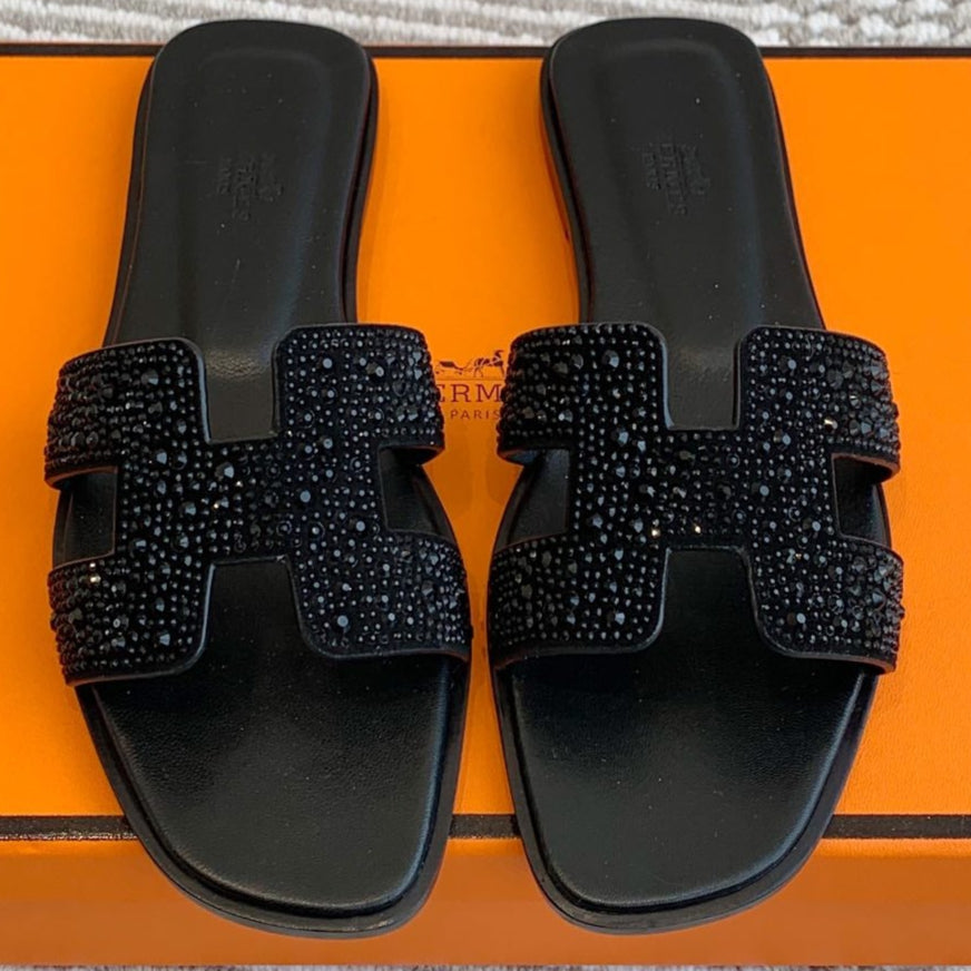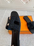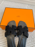 HM Oran Rhinestone Sandals Black Suede Goatskin 291391