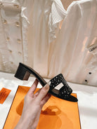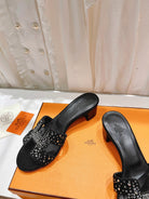 OASIS SANDALS BLACK LAMBSKIN ATTACH CRYSTAL