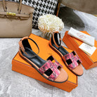 SANTORINI SANDAL BLACK MIX LIGHT PINK CALFSKIN WITH PATTERN