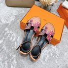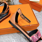 - Material: Sandal in Clafskin with straight cut edges, "H" cut-out detail and thin ankle strap.