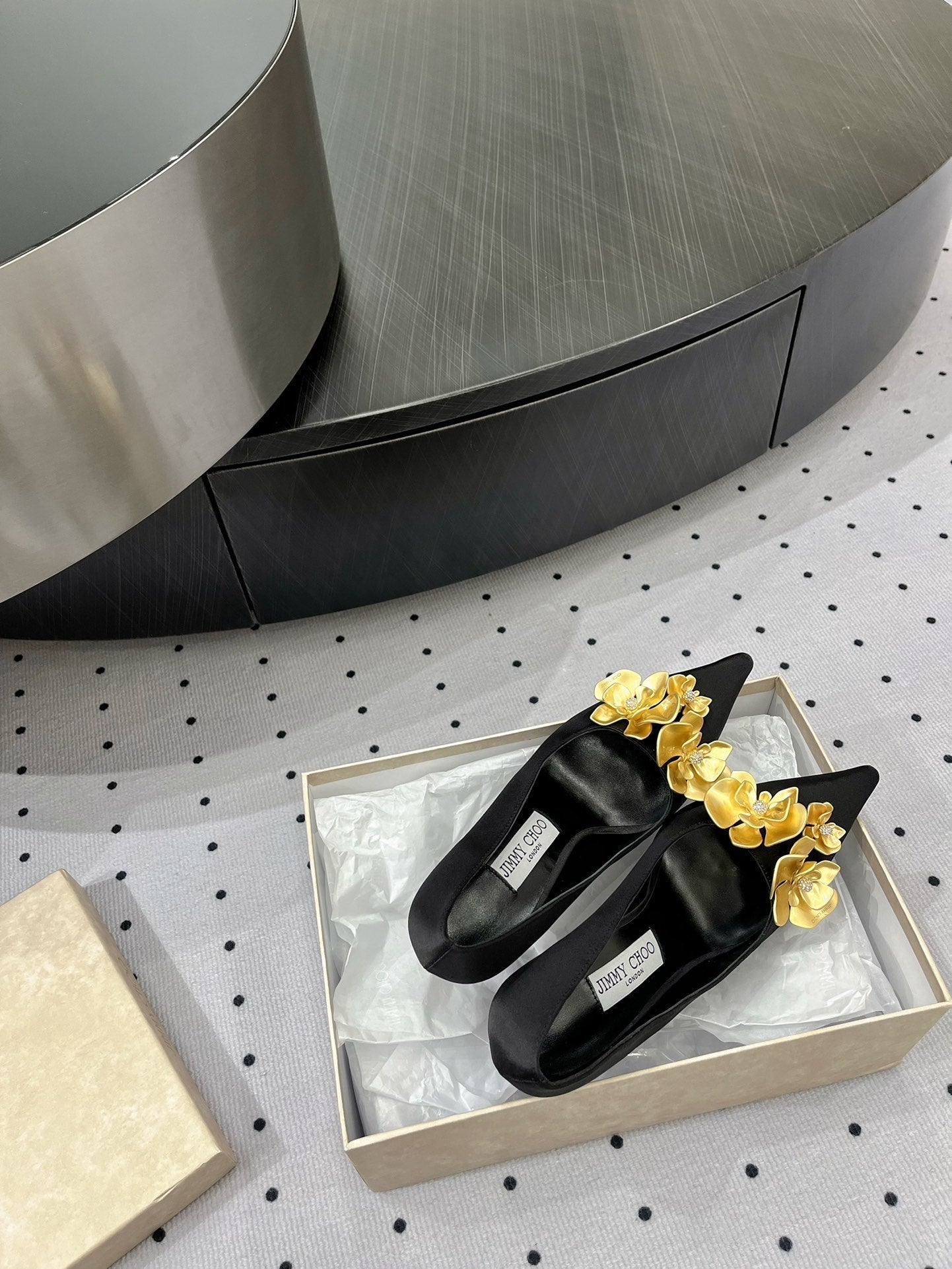 Jimmy Ixia 95 In Black Cowhide Pumps With Flowers 591587