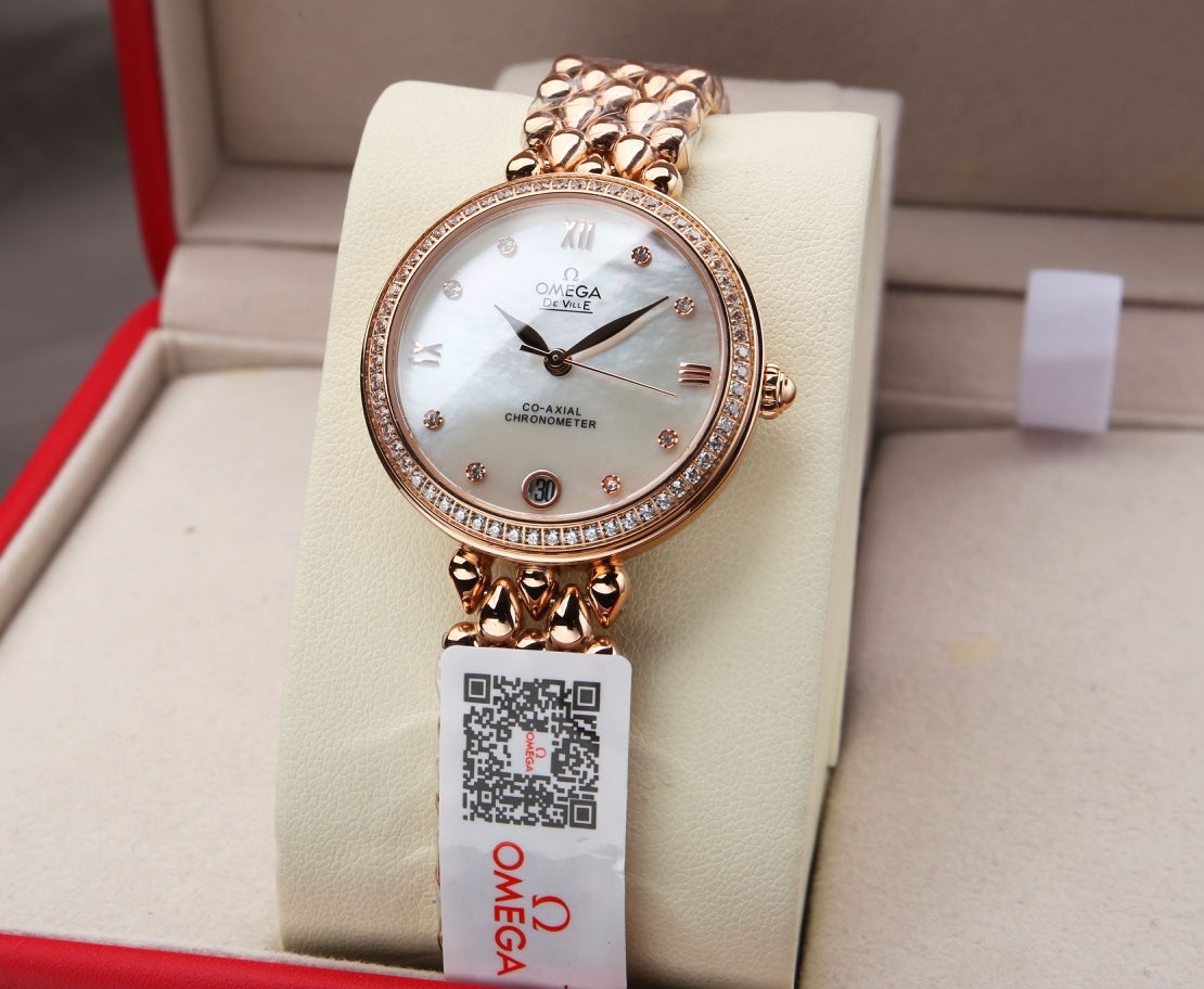DEVILLE PRESTIGE 32MM ROSE GOLD DIAMOND BEZEL MOP DIAL