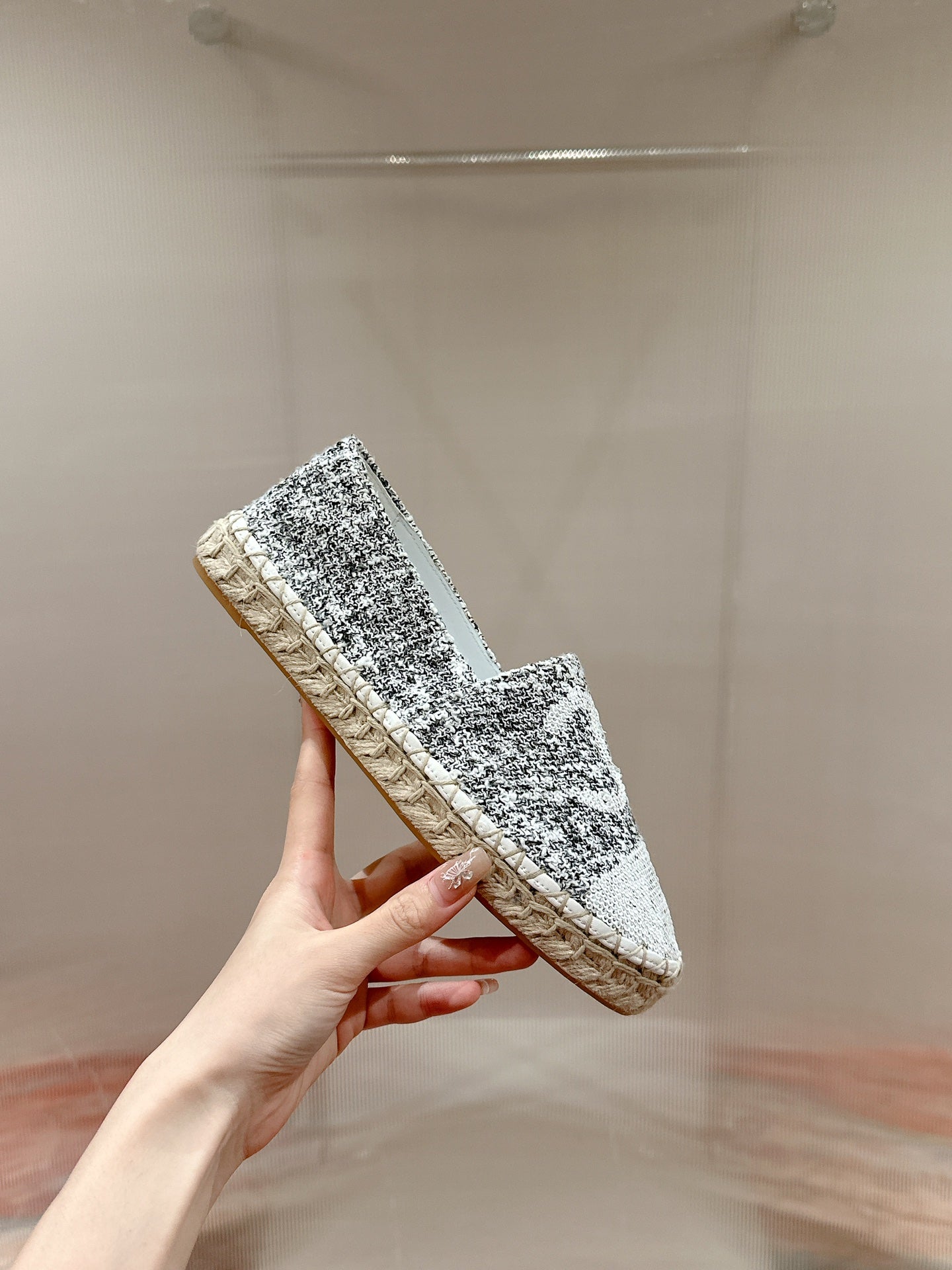 cc espadrilles grey fabric white sequin