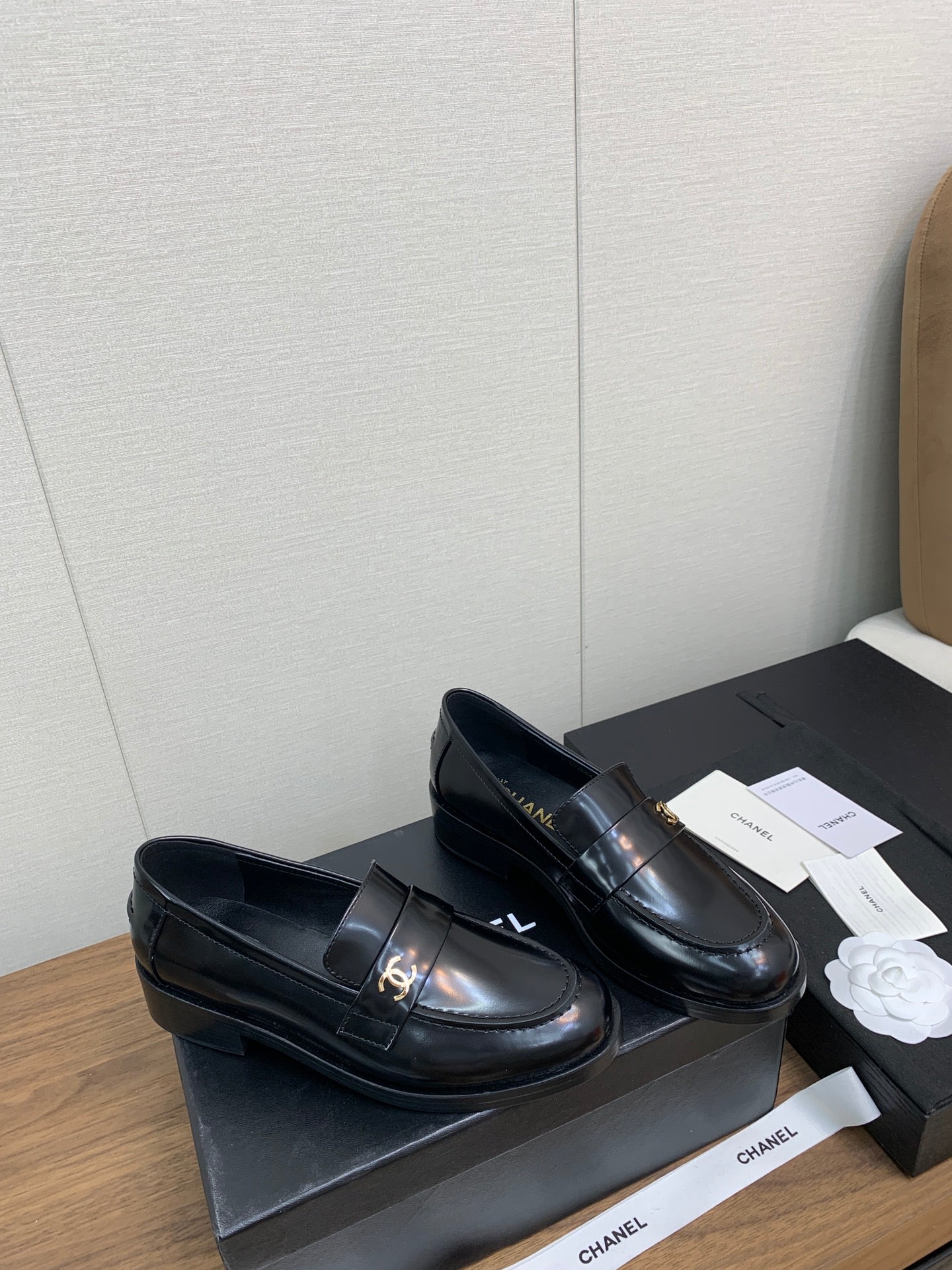 CC Moccasins 25mm Glossy Black Lambskin