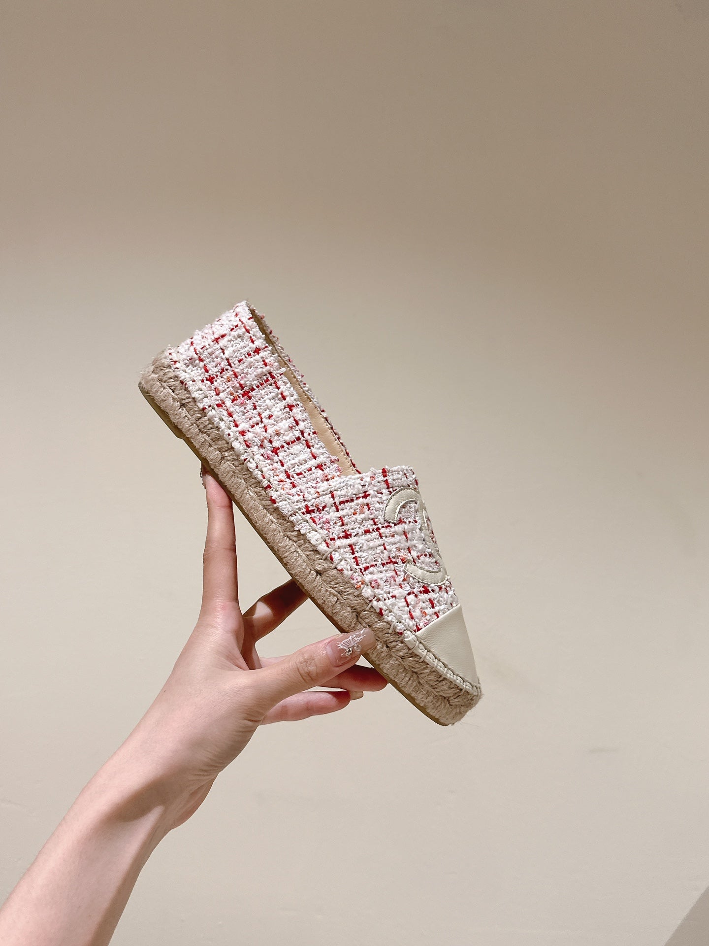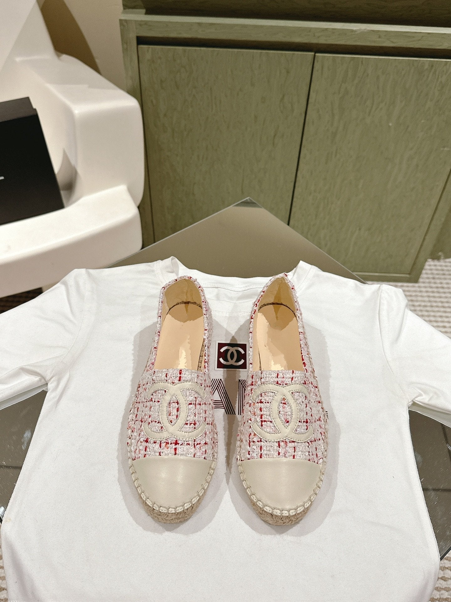 espadrilles white red tweed white calfskin