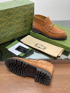 GG Horsebit Ankle Boot Light Brown Suede