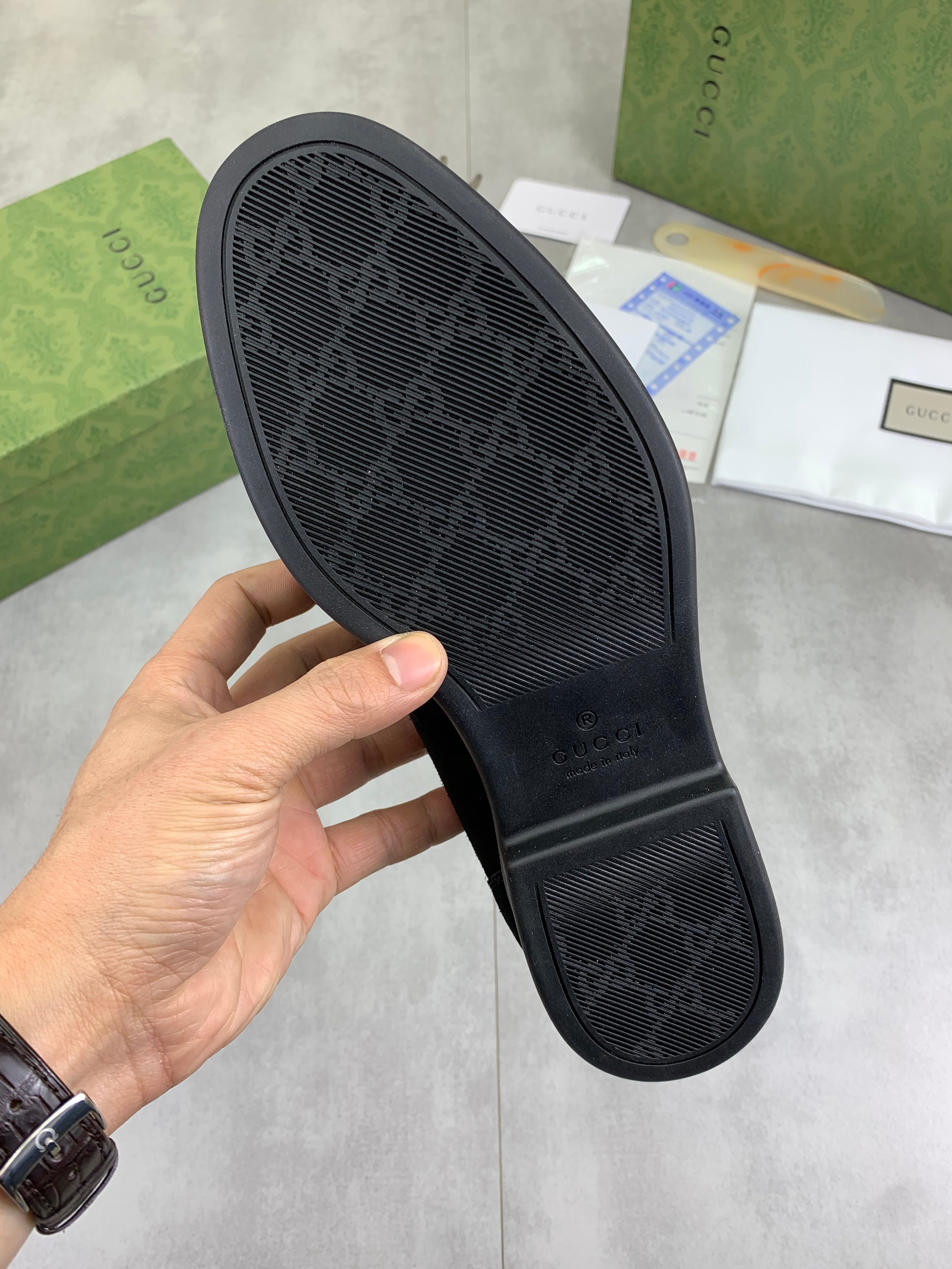 GG Men's Horsebit Loafer Black Suede 524777
