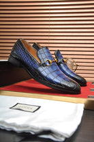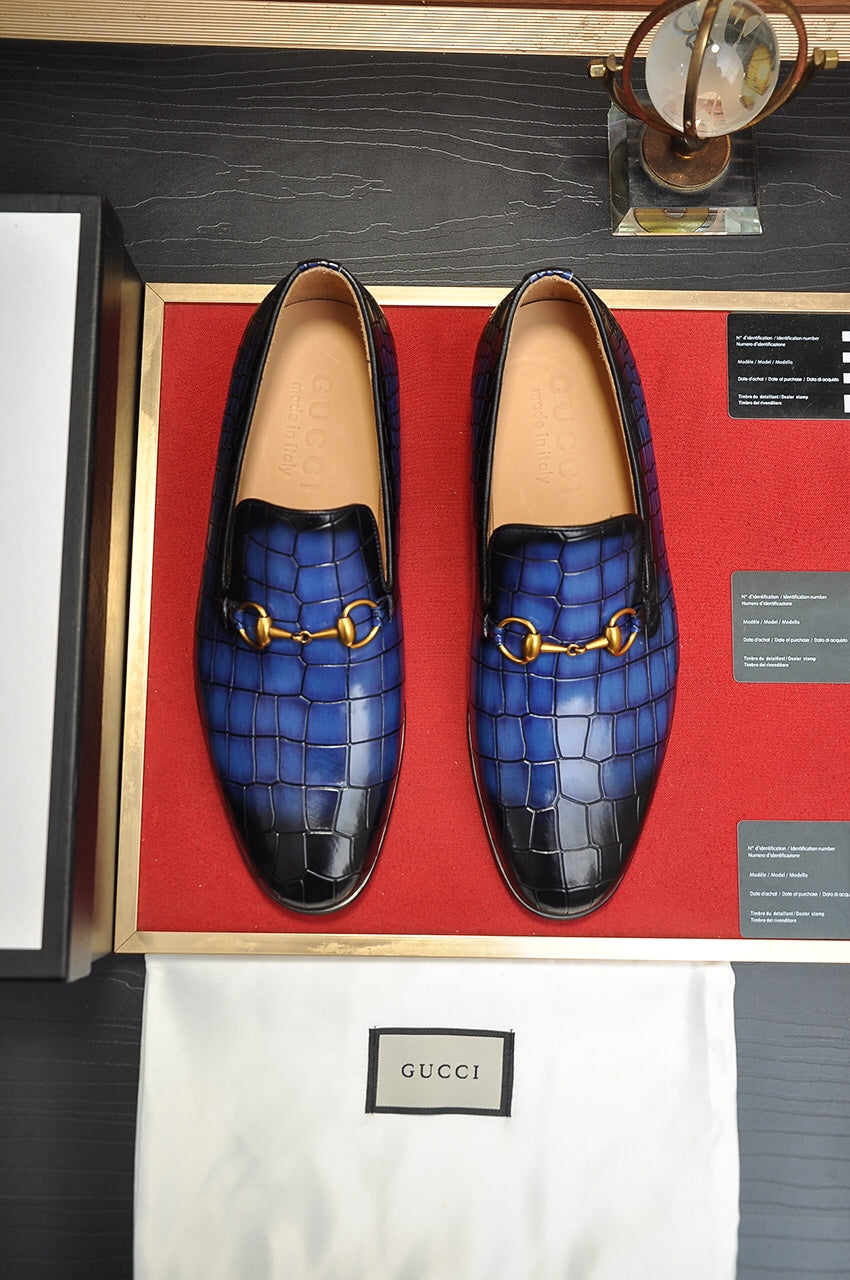 GG Men's Loafer Blue mix Black Embossed Cowhide 295649