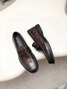 GG Men's Loafer Dark Brown Embossed Cowhide 525164