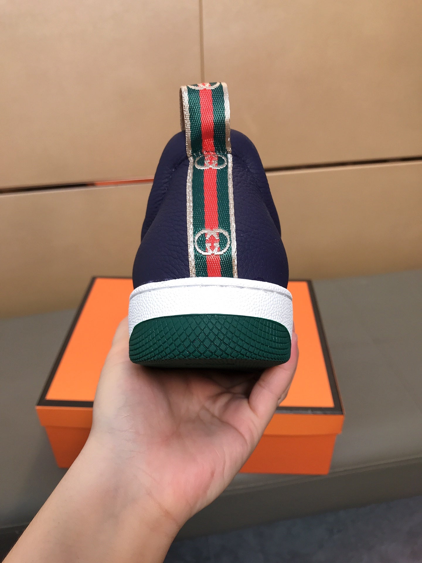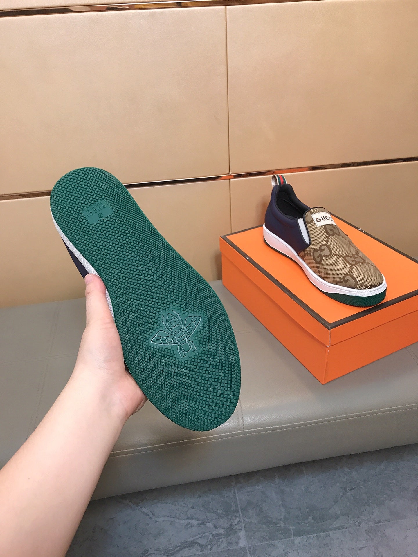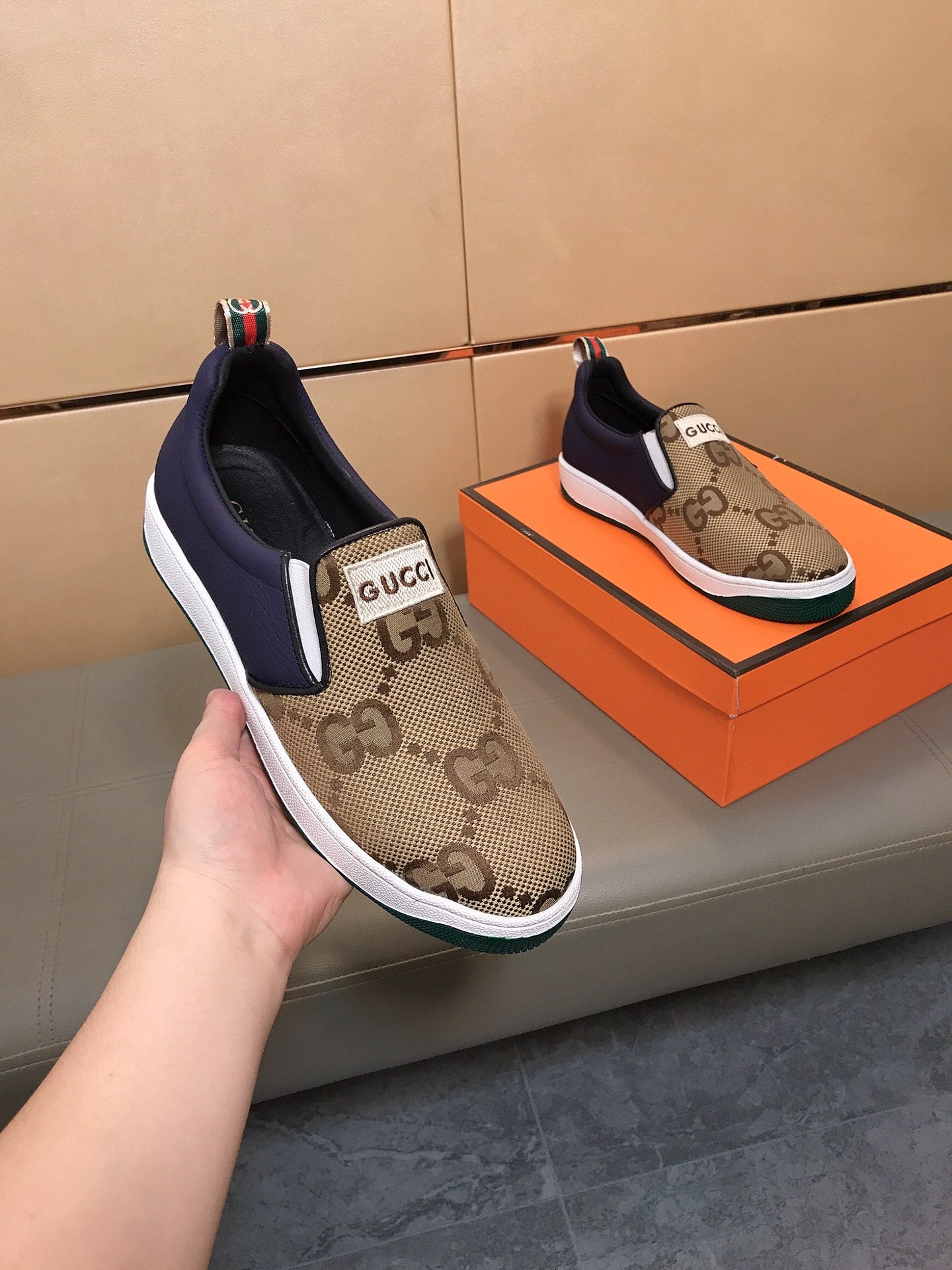 GG Men's Slip On Brown Cowhide Printed Fabric 525192
